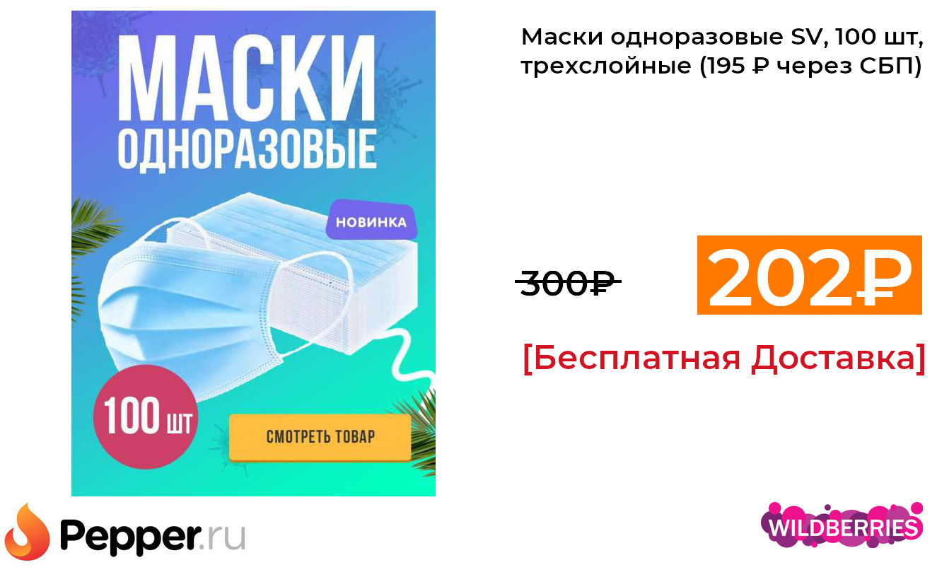 🔹Маски одноразовые SV, 100 шт, трехслойные (195 ₽ через СБП) ❗️🔥(везде от 300₽)