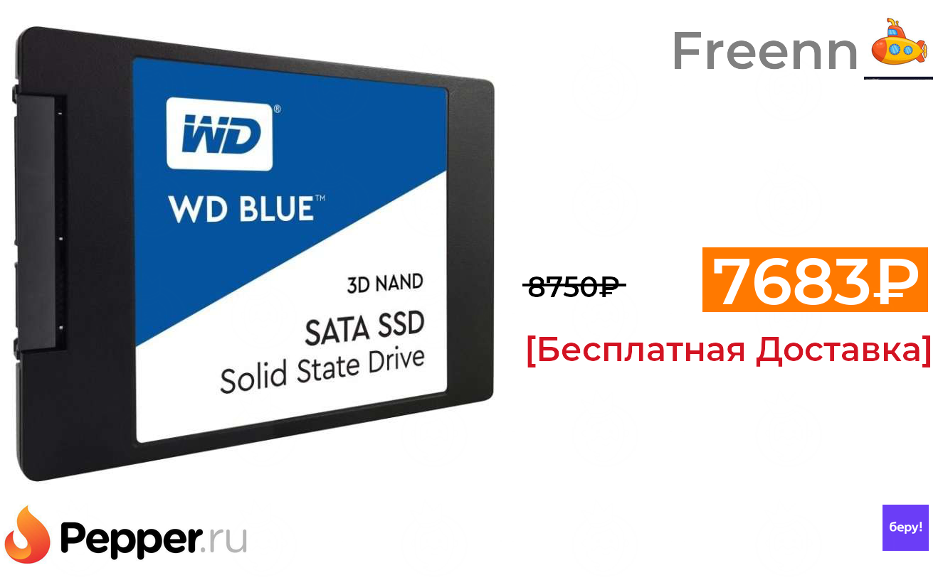 🔹SSD накопитель Western Digital WD Blue SATA 1000 GB (WDS100T2B0A) 7683₽ ❗️🔥(везде от 8750₽)