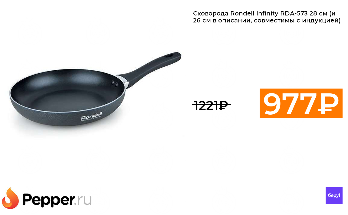 🔹Сковорода Rondell Infinity RDA-573 28 см (и 26 см в описании, совместимы с индукцией) 977₽ ❗️🔥(везде от 1221₽)