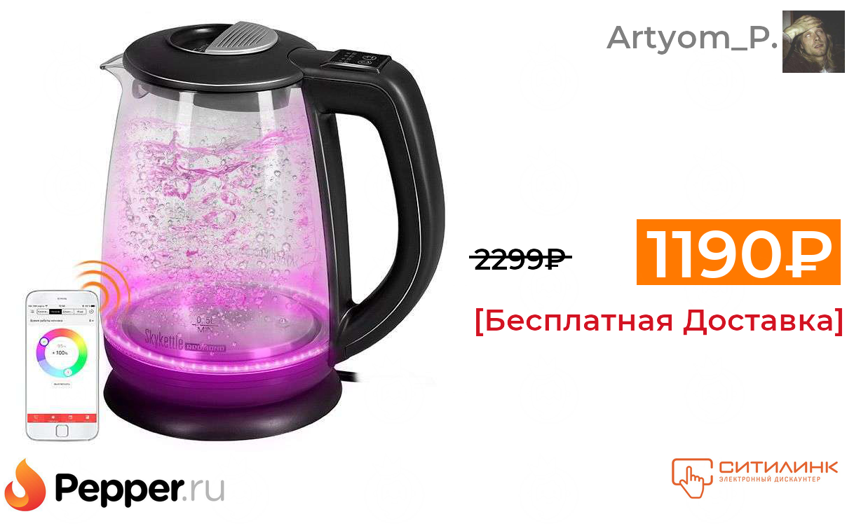 🔹[Спб] Чайник электрический Redmond SkyKettle G213S 1190₽ ❗️🔥(везде от 2299₽)