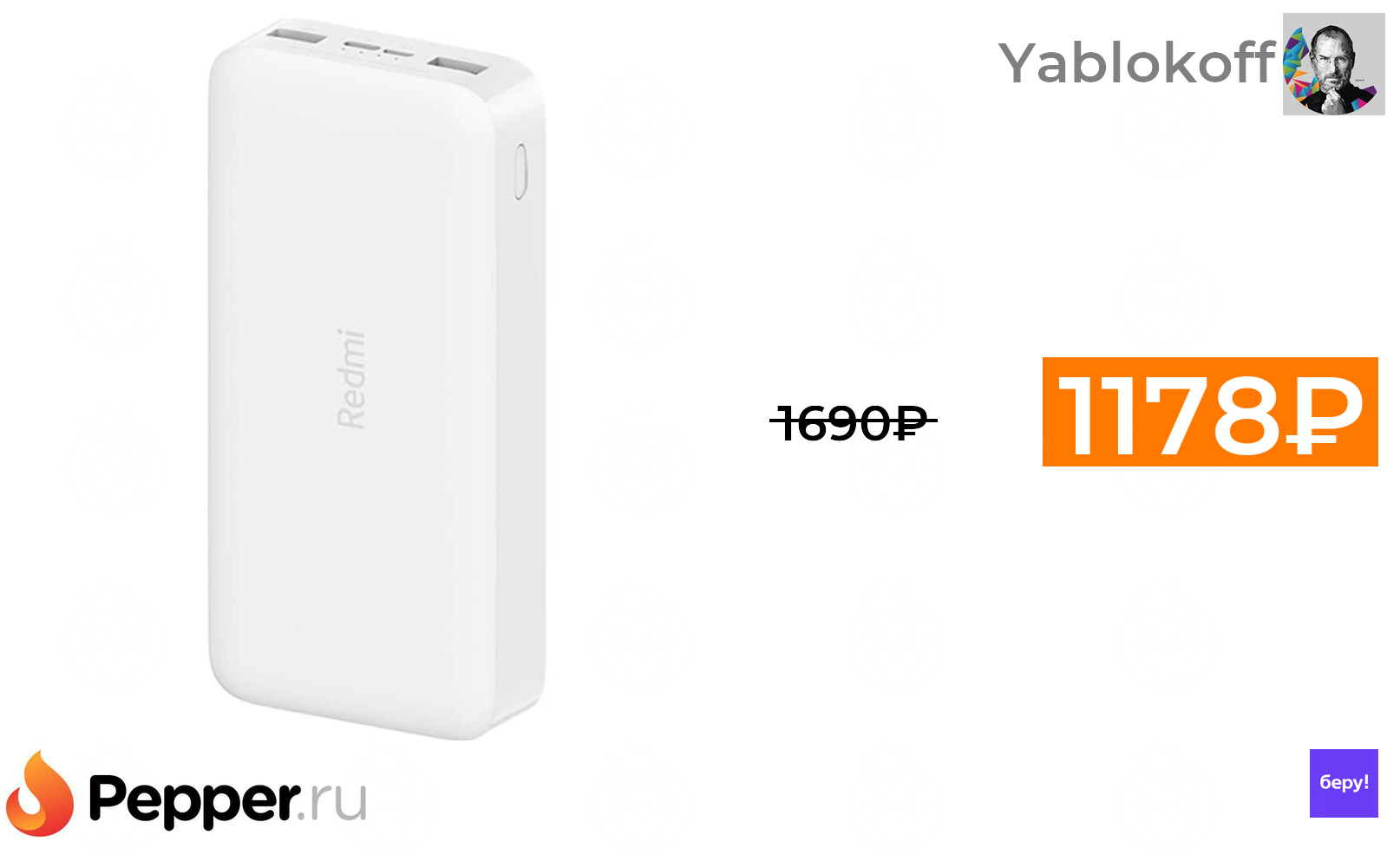 🔹Аккумулятор Xiaomi Redmi Power Bank Fast Charge 20000mAh, белый 1178₽ ❗️🔥(везде от 1690₽)