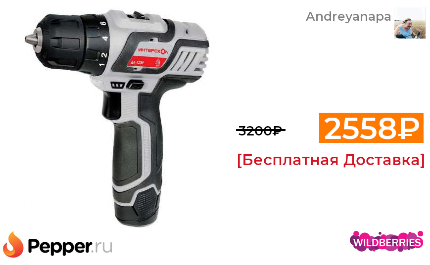 🔹Дрель-шуруповерт аккумуляторная ИНТЕРСКОЛ ДА-12ЭР (Li-ion, 2 аккум., 2Ач) 2558₽ ❗️🔥(везде от 3200₽)
