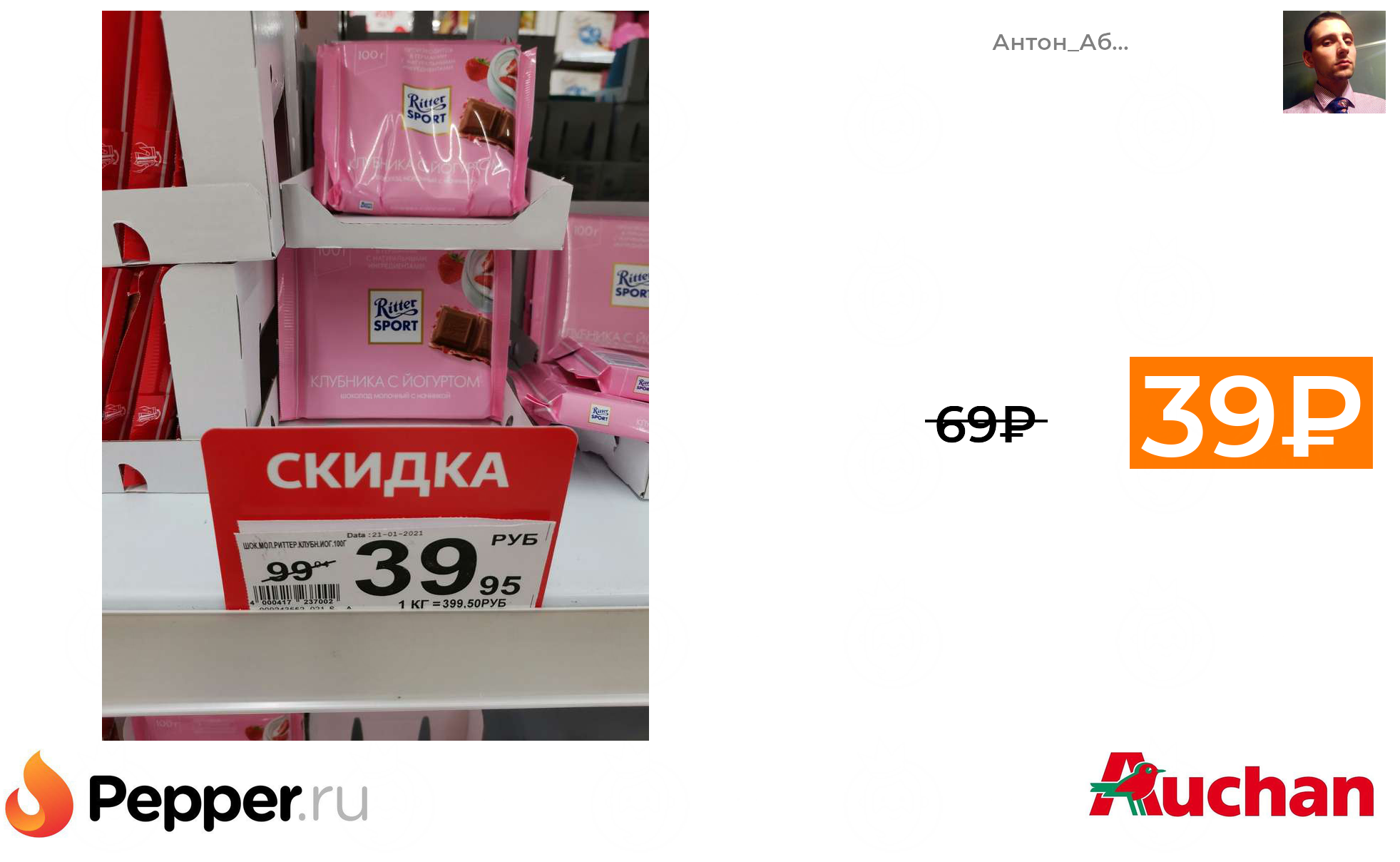 🔹[МСК] Шоколад Ritter Sport Клубника с йогуртом (Гагаринский Ашан) 39₽ ❗️🔥(везде от 69₽)