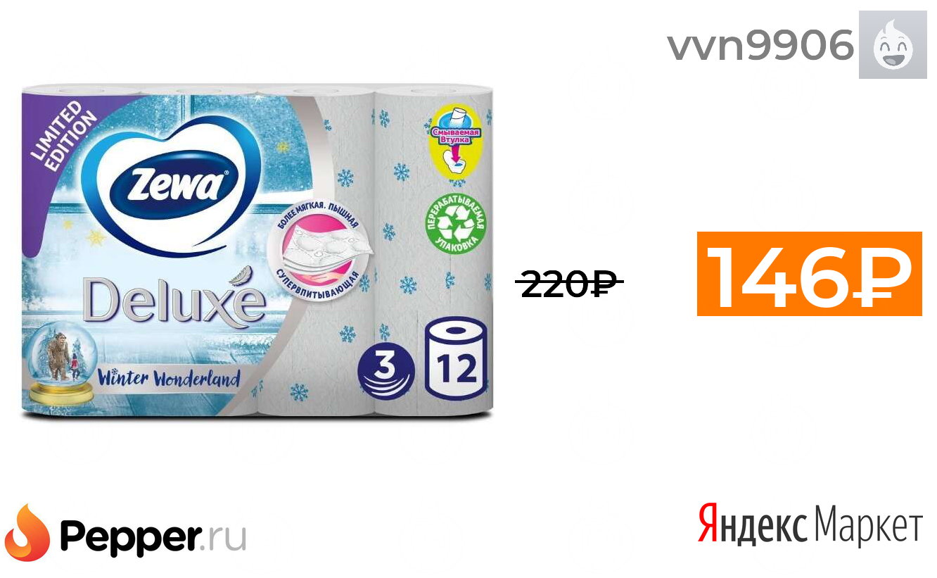🔹Туалетная бумага Zewa Deluxe белая трёхслойная 12 рул. (цена по акции 2=3) 146₽ ❗️🔥(везде от 220₽)