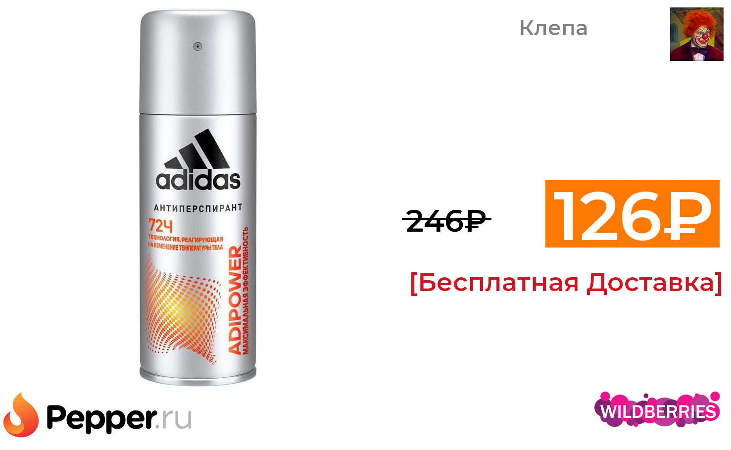 🔹adidas / Дезодорант-антиперспирант для мужчин Adipower 72ч спрей, 150 мл 126₽ ❗️🔥(везде от 246₽)