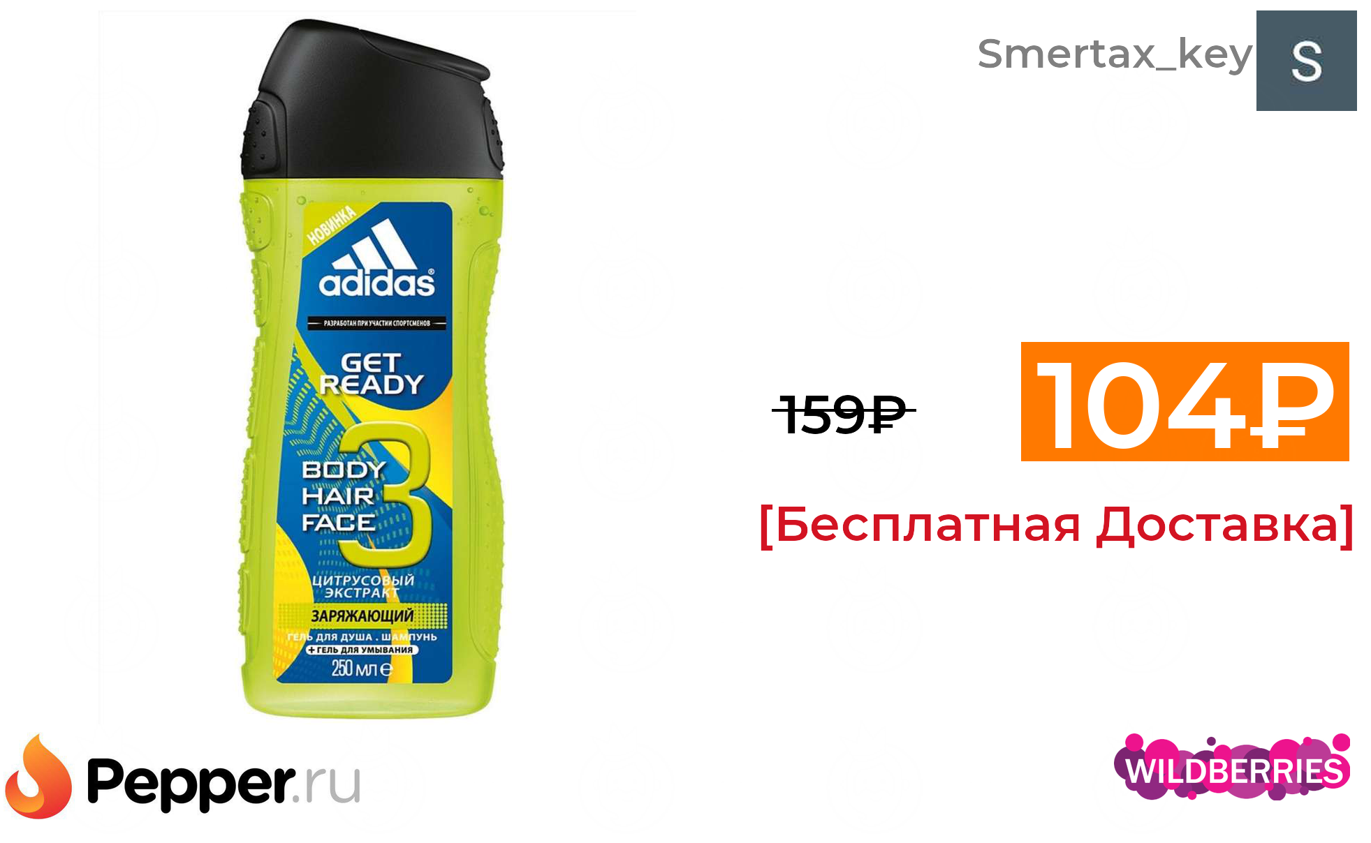 🔹Гель для душа adidas Get Ready, 250 мл 104₽ ❗️🔥(везде от 159₽)