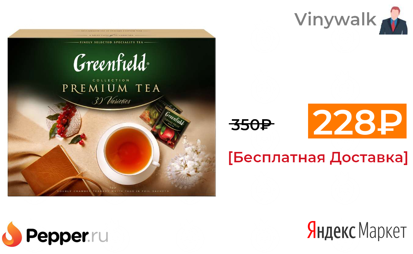 🔹Чай Greenfield Selection of 30 varieties ассорти в пакетиках подарочный набор, 120 шт. 228₽ ❗️🔥(везде от 350₽)
