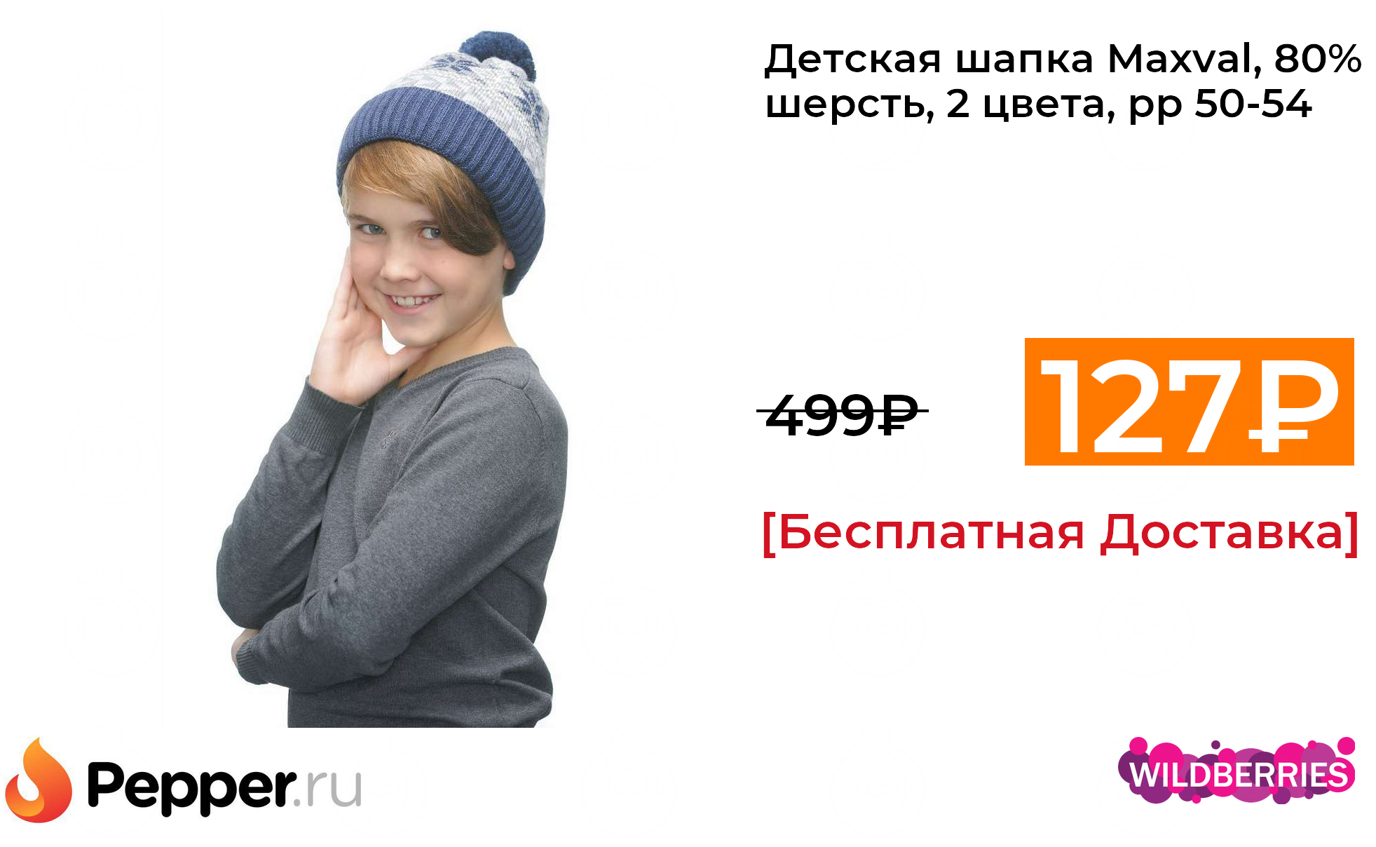 🔹Детская шапка Maxval, 80% шерсть, 2 цвета, рр 50-54 127₽ ❗️🔥(везде от 499₽)