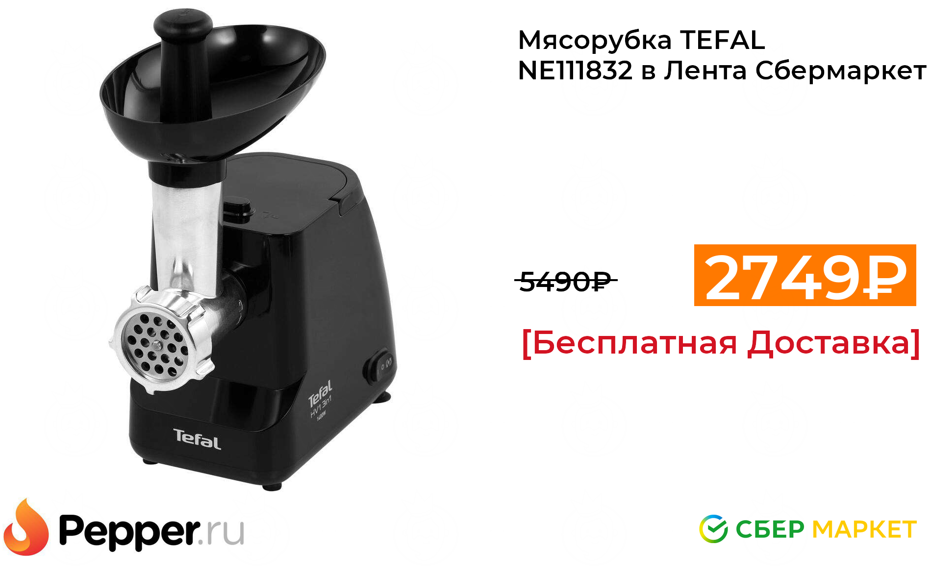 🔹Мясорубка TEFAL NE111832 в Лента Сбермаркет 2749₽ ❗️🔥(везде от 5490₽)