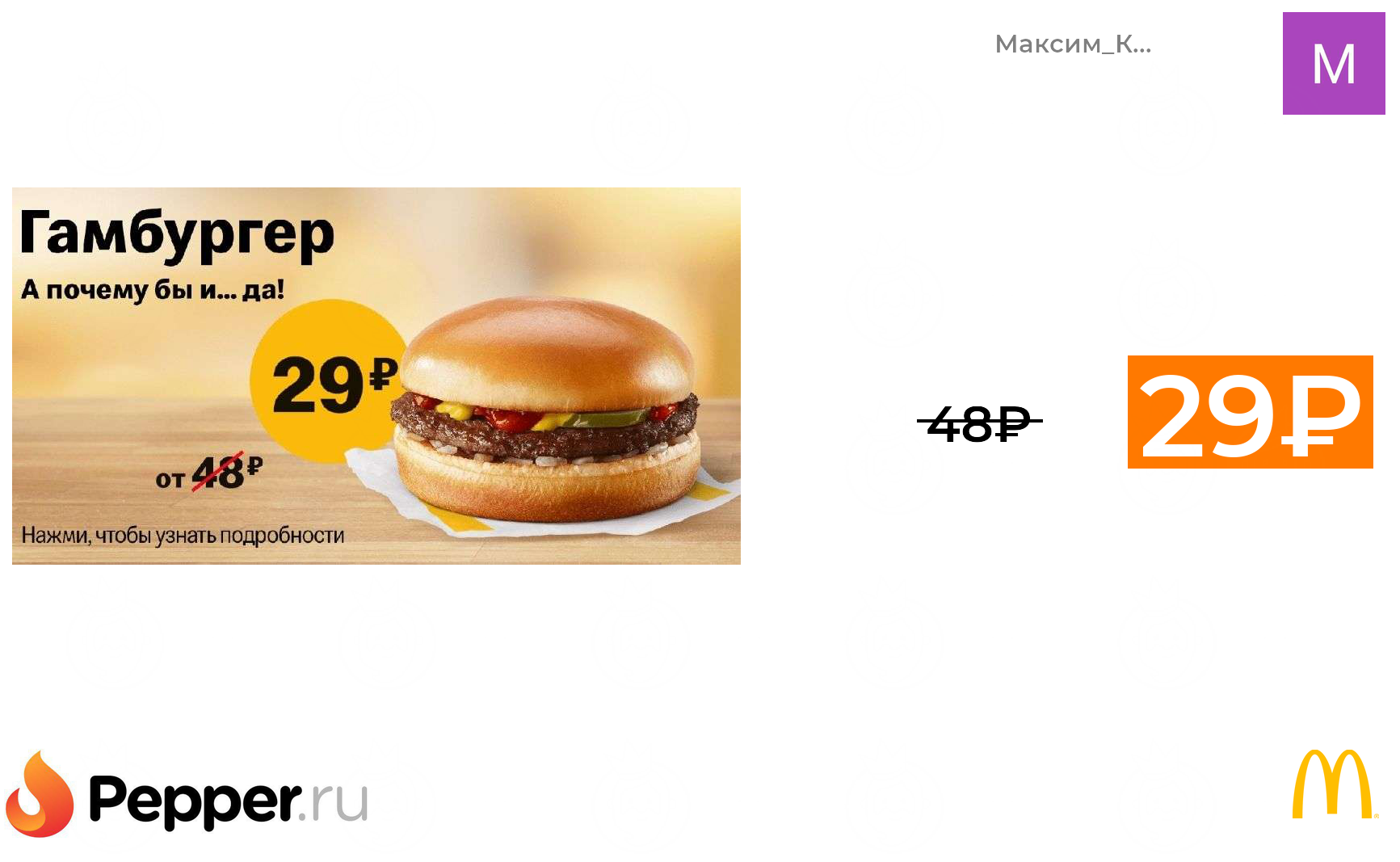 🔹Гамбургер 29 р в Макдональдс 29₽ ❗️🔥(везде от 48₽)