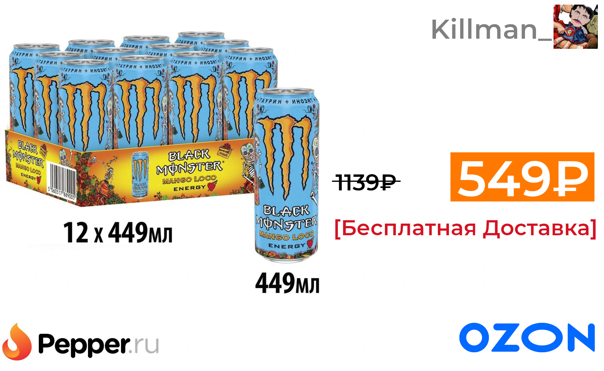 🔹Энергетический напиток Black monster mango loco 12шт 549₽ ❗️🔥(везде от 1139₽)