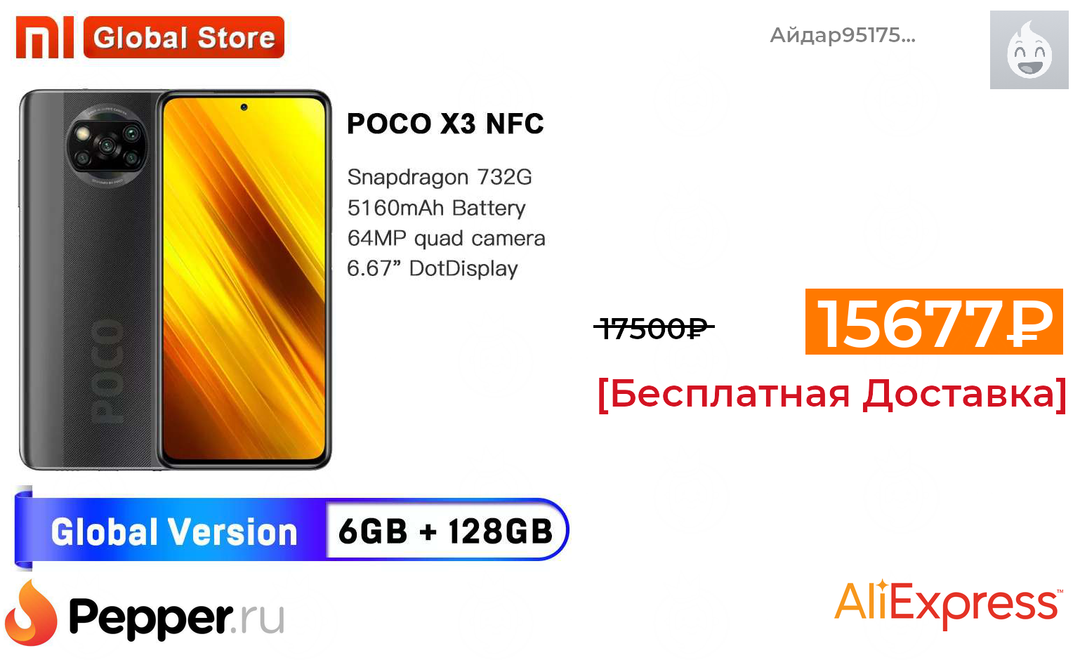 🔹Смартфон POCO X3 NFC 6 + 128ГБ RU (ростест, доставка от 2 дня, официальная гарантия) 16600₽ ❗️🔥