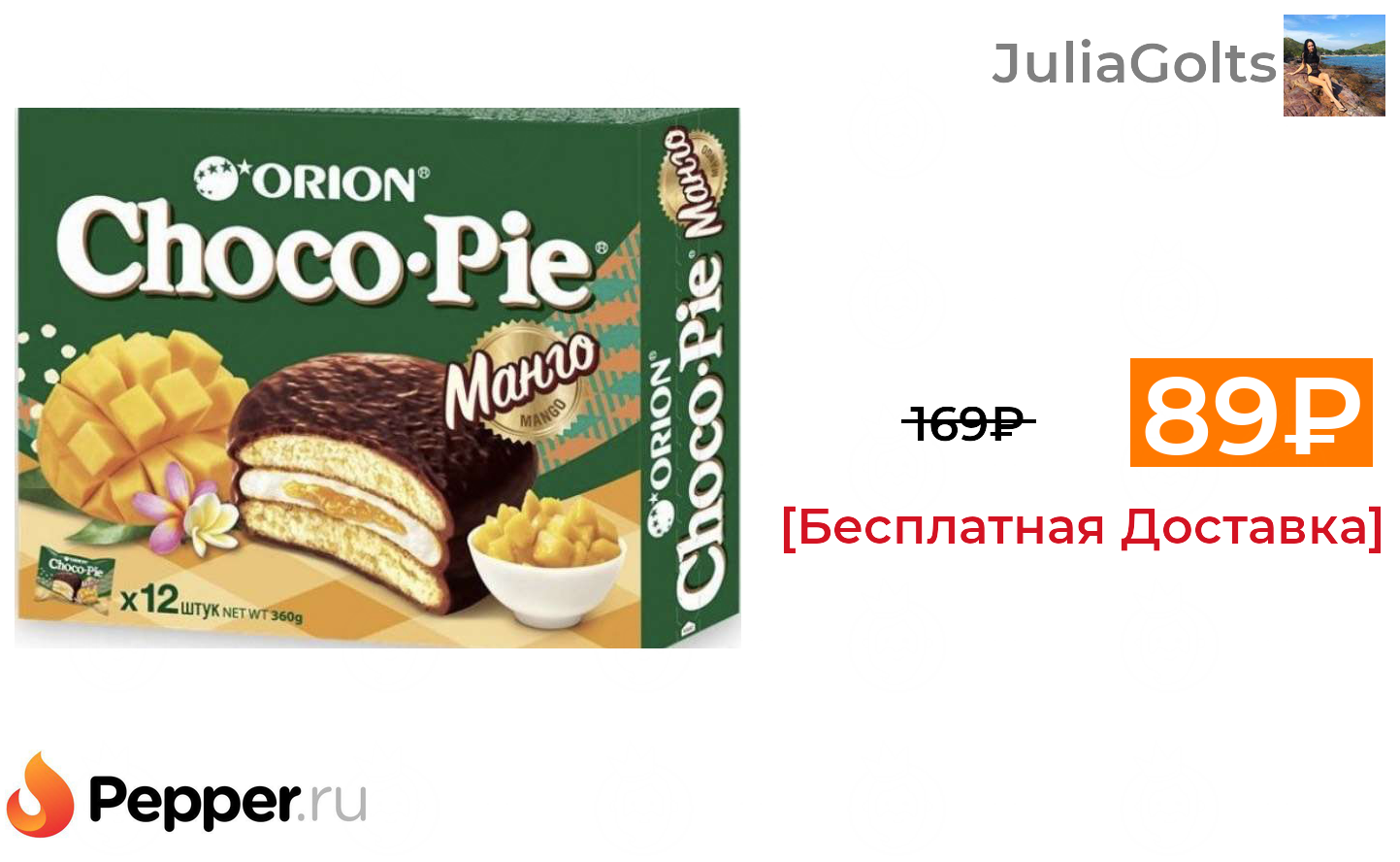 🔹[МСК] Печенье Orion Choco Pie, манго, 360г 89₽ ❗️🔥(везде от 169₽)