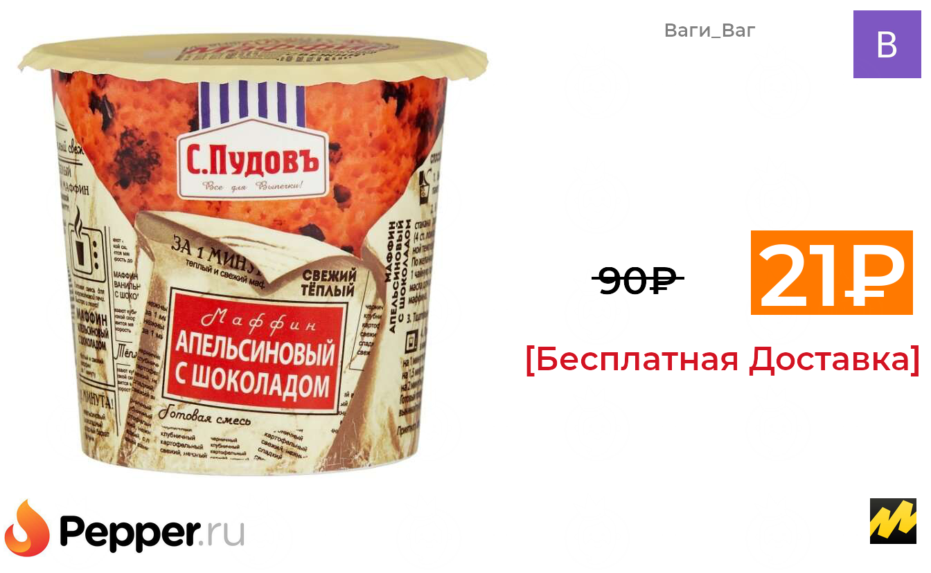 🔹С.Пудовъ Маффин Апельсиновый с шоколадом 21₽ ❗️🔥(везде от 90₽)