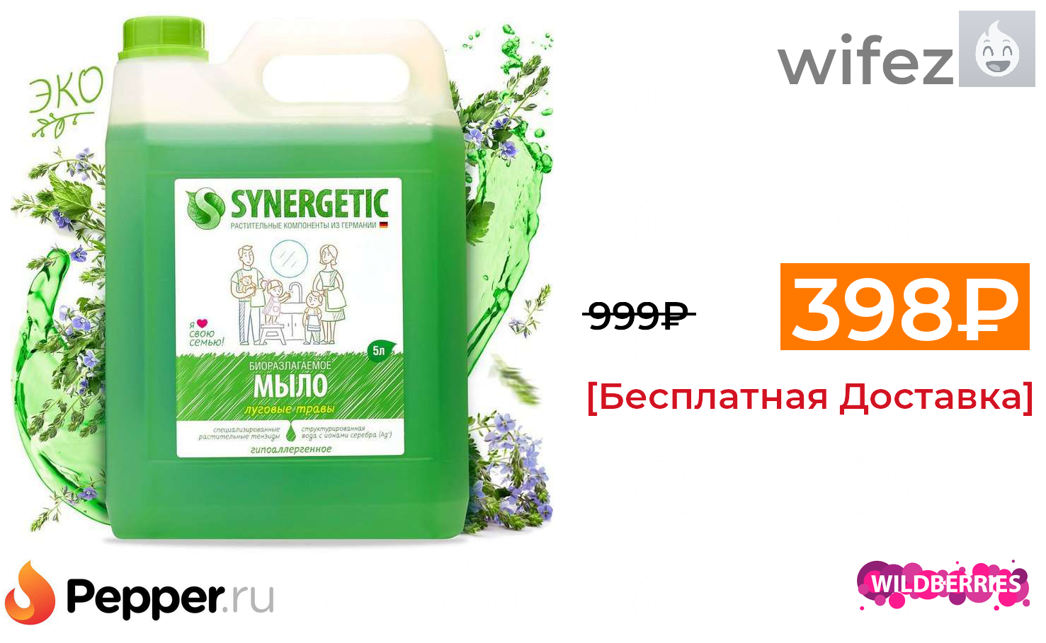 🔹Жидкое мыло SYNERGETIC "Луговые травы" с эффектом увлажнения, гипоаллергенное, 5л 398₽ ❗️🔥(везде от 999₽)