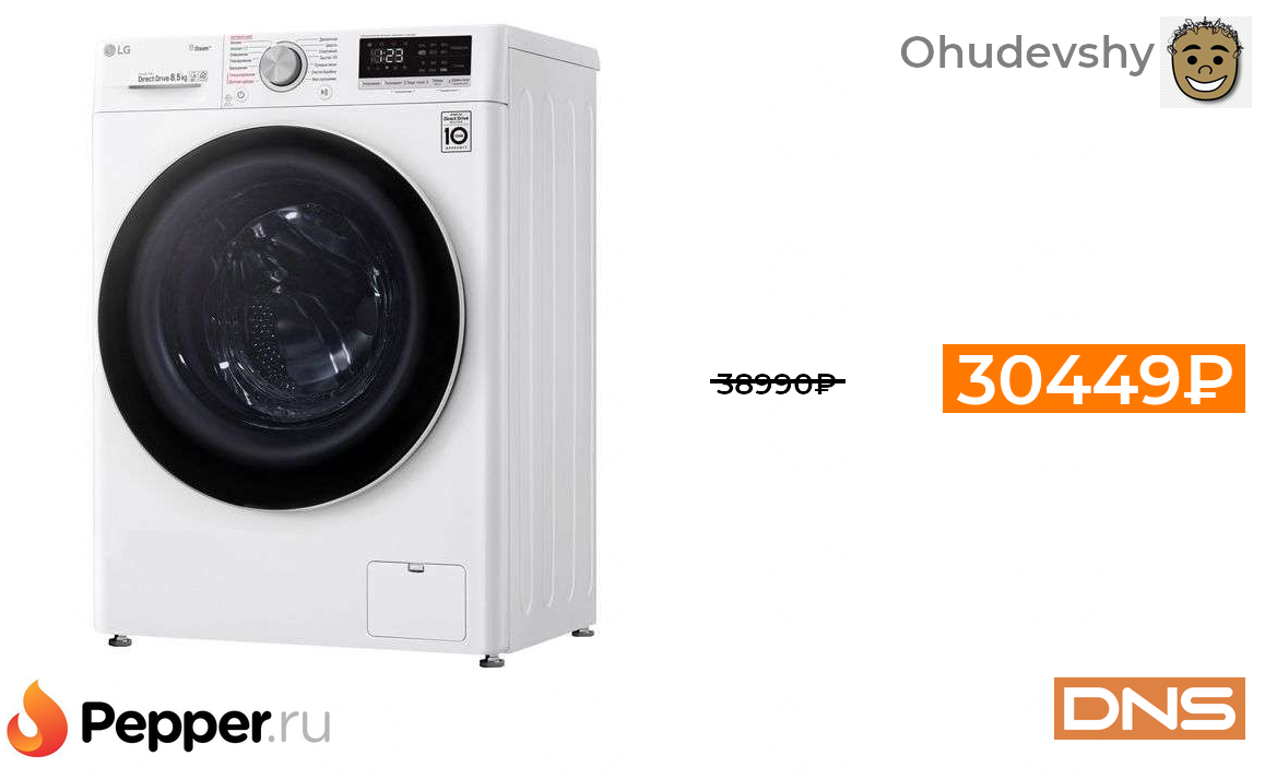 🔹Стиральная машина LG AIDD F2V5GS0W + ГЛЦ в описании (8,5кг, 1200об/мин, пар, Wi-Fi, Китай) 30449₽ ❗️🔥(везде от 38990₽)