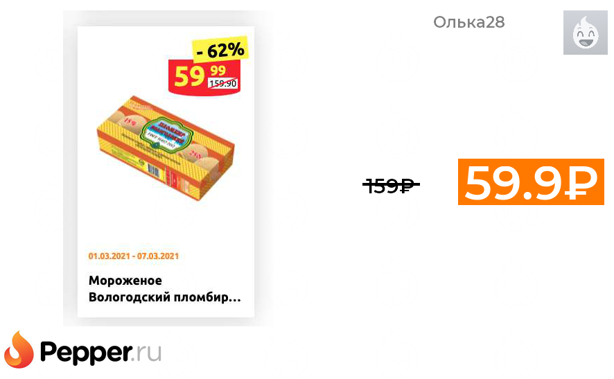 🔹Мороженое Вологодский Пломбир 250 гр 59.99₽ ❗️🔥(везде от 159₽)