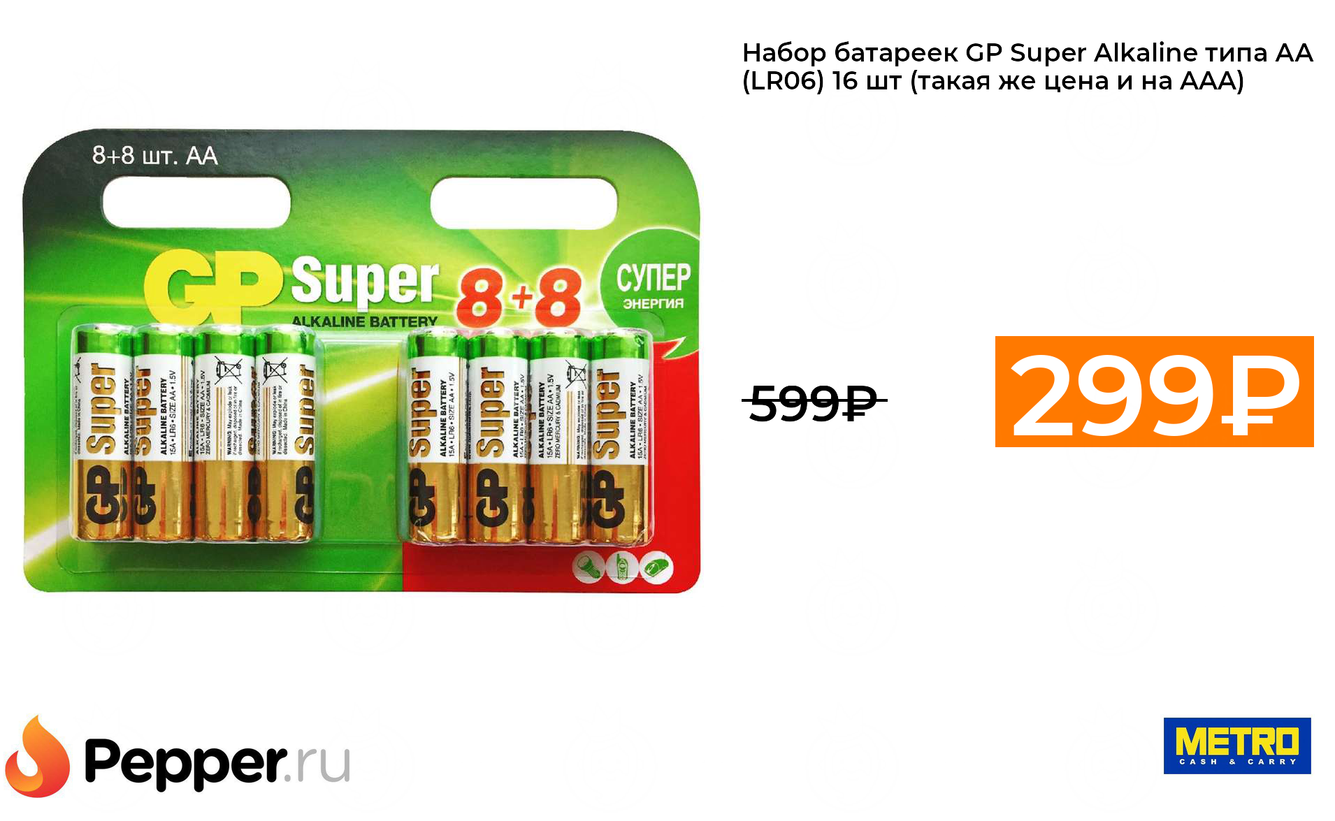 🔹Набор батареек GP Super Alkaline типа АА (LR06) 16 шт (такая же цена и на AAA) 299₽ ❗️🔥(везде от 599₽)