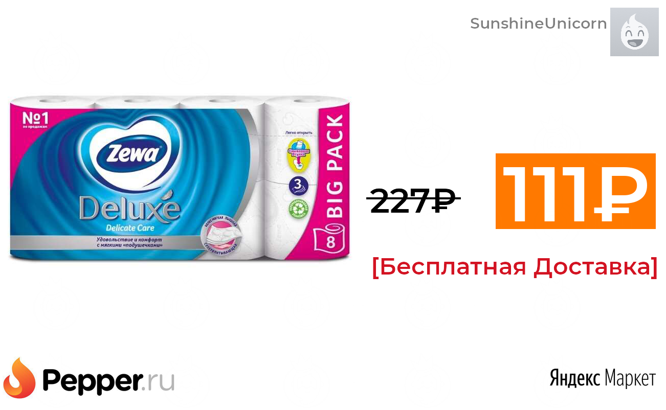 🔹Туалетная бумага Zewa Deluxe белая трёхслойная, 8 рул. (4 по цене 3) 111₽ ❗️🔥(везде от 227₽)