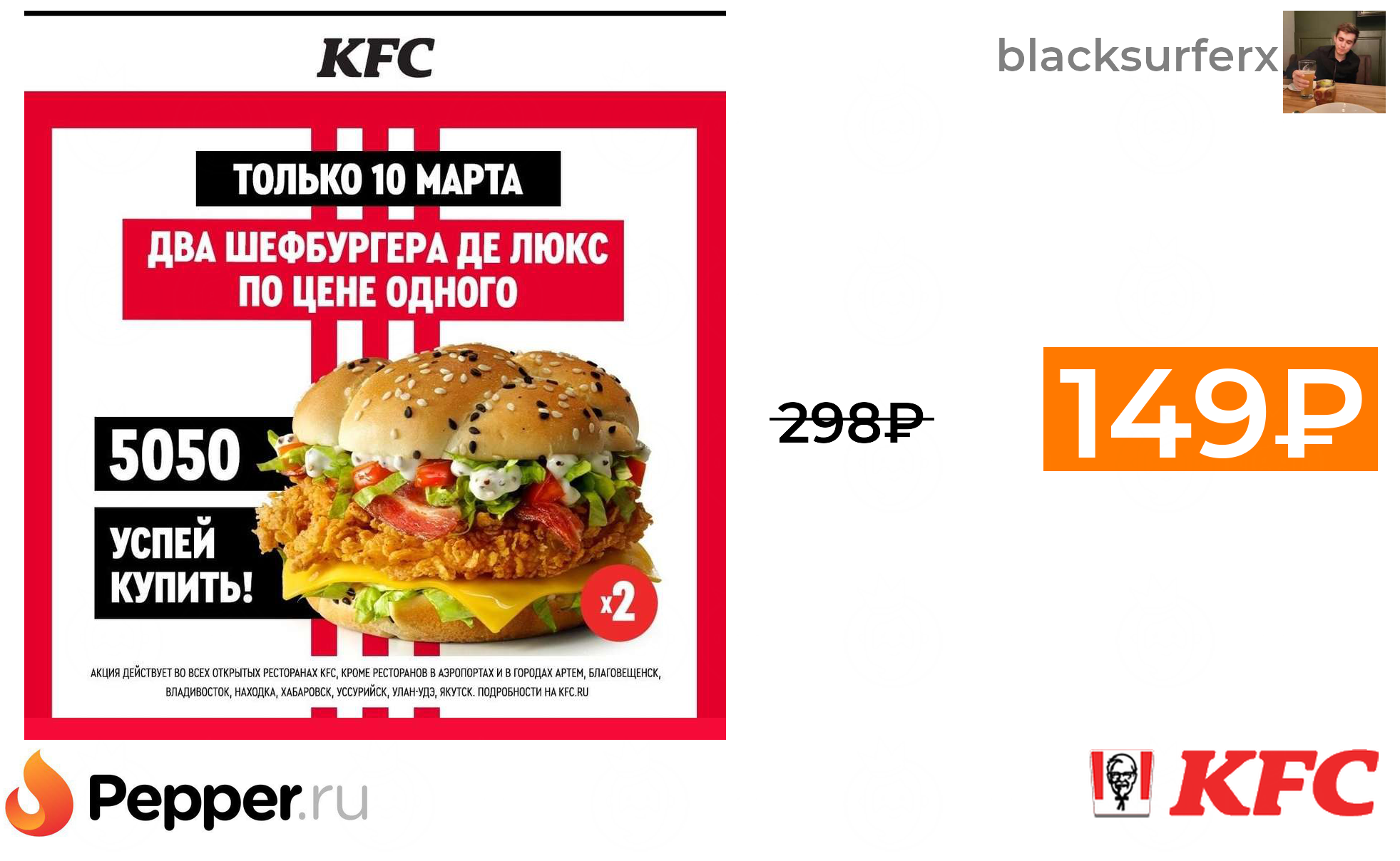 🔹Два Шефбургер Де Люкс по цене одного (10.03) 149₽ ❗️🔥(везде от 298₽)