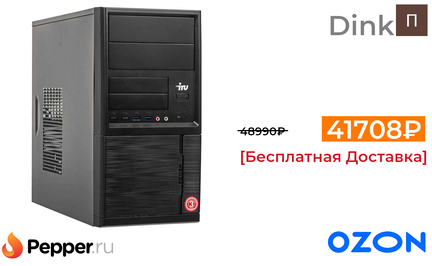 🔹Системный блок iRU Home 225 MT Ryzen 5 2600/16Gb/1Tb 7.2k/SSD120Gb/GTX1650 4Gb/DOS/черный(+2085 баллов) 41708₽ ❗️🔥(везде от 48990₽)
