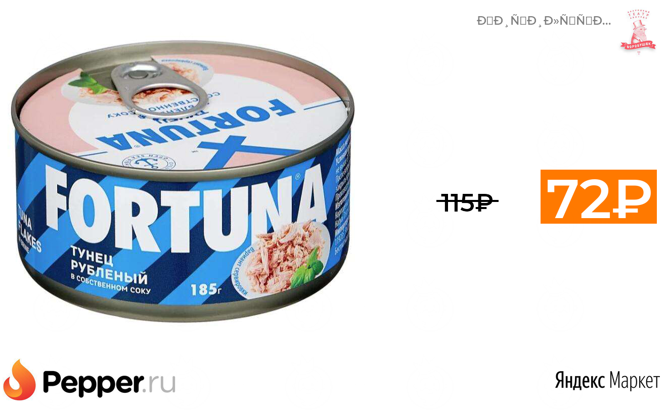 🔹Fortuna Тунец рубленый в собственном соку, 185 г 72₽ ❗️🔥(везде от 115₽)
