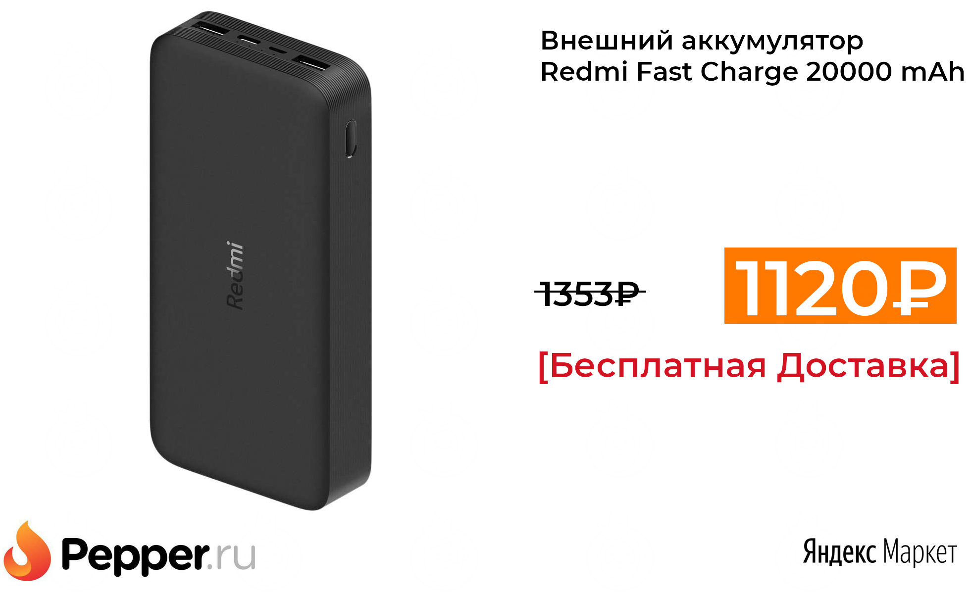 🔹Внешний аккумулятор Redmi Fast Charge 20000 mAh 1120₽ ❗️🔥(везде от 1353₽)