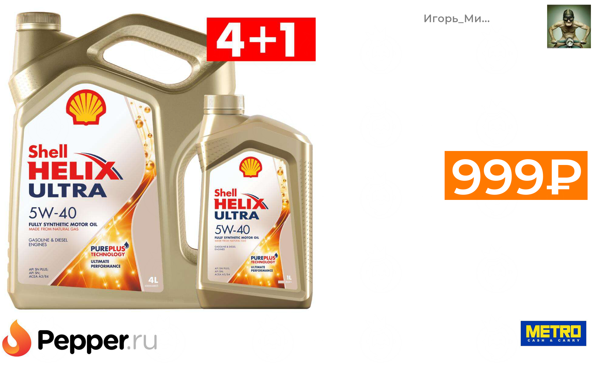 🔹Моторное масло синтетическое Shell Helix Ultra 5W-40 4+1 999₽ ❗️🔥