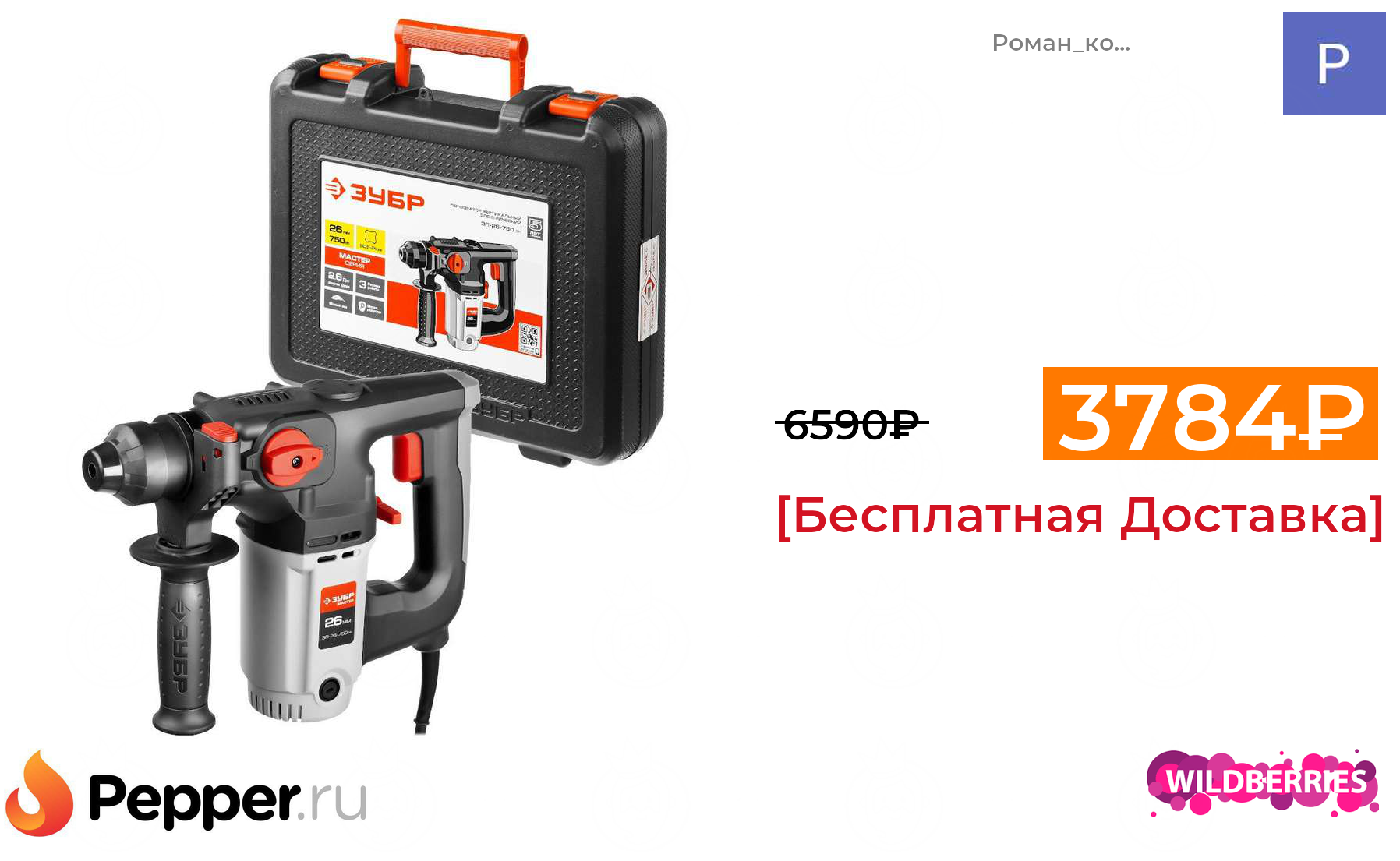 🔹Перфоратор Зубр ЗП-26-750 ЭК (Кейс+ 5 лет гарантии) 3784₽ ❗️🔥(везде от 6590₽)
