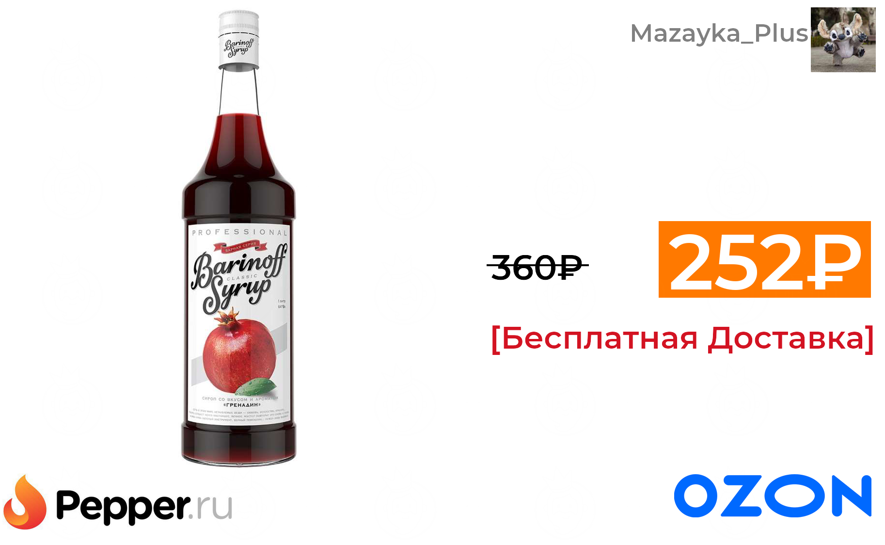 🔹Сироп Barinoff Гренадин(для кофе и коктелей), 1л 252₽ ❗️🔥(везде от 360₽)