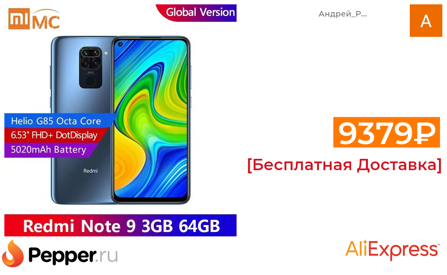 🔹Смартфон Xiaomi Redmi note 9 NFC 3+64 Гб 9379₽ ❗️🔥