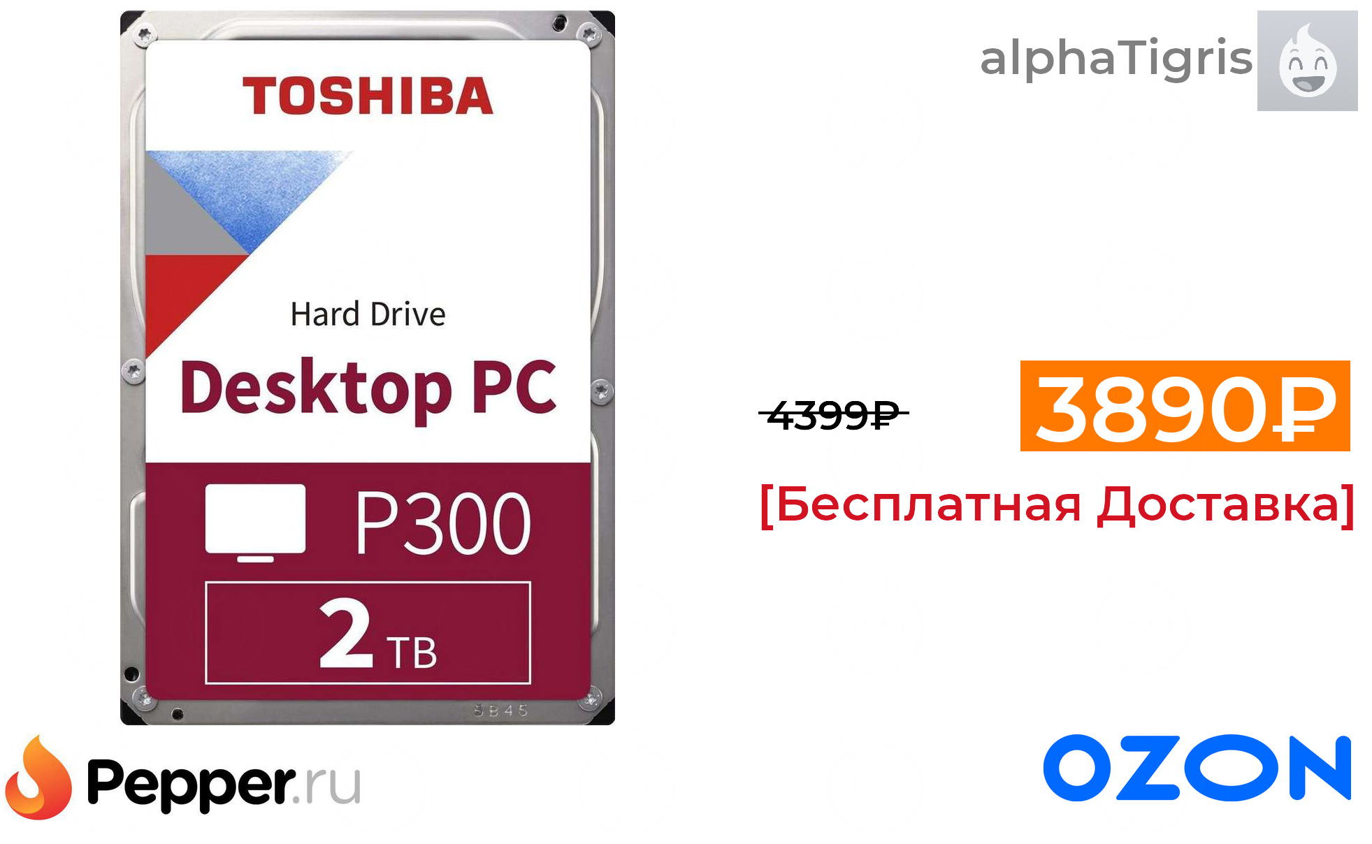 🔹Внутренний жесткий диск Toshiba P300 (HDWD220UZSVA) 2 ТБ 3890₽ ❗️🔥(везде от 4399₽)