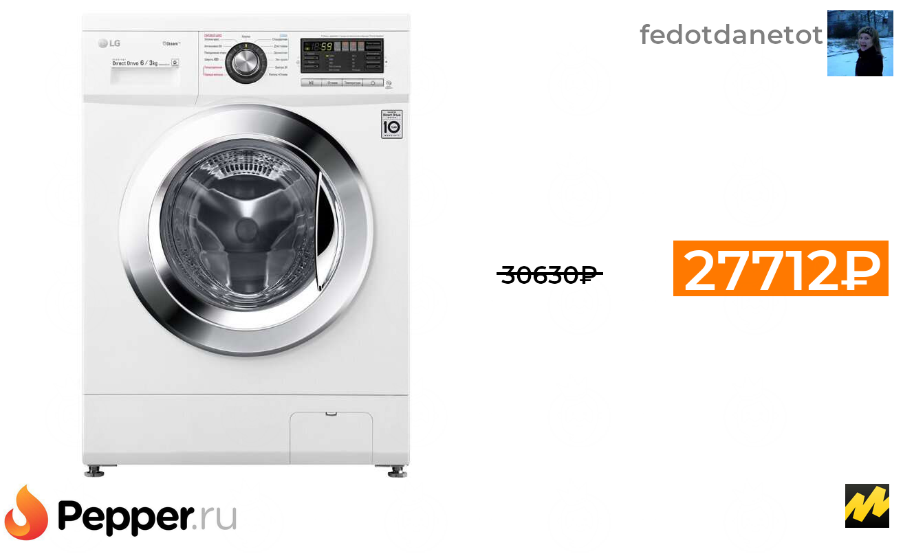 🔹Стиральная машина с сушкой и паром 6/3кг LG F1296CDS3 27712₽ ❗️🔥(везде от 30630₽)