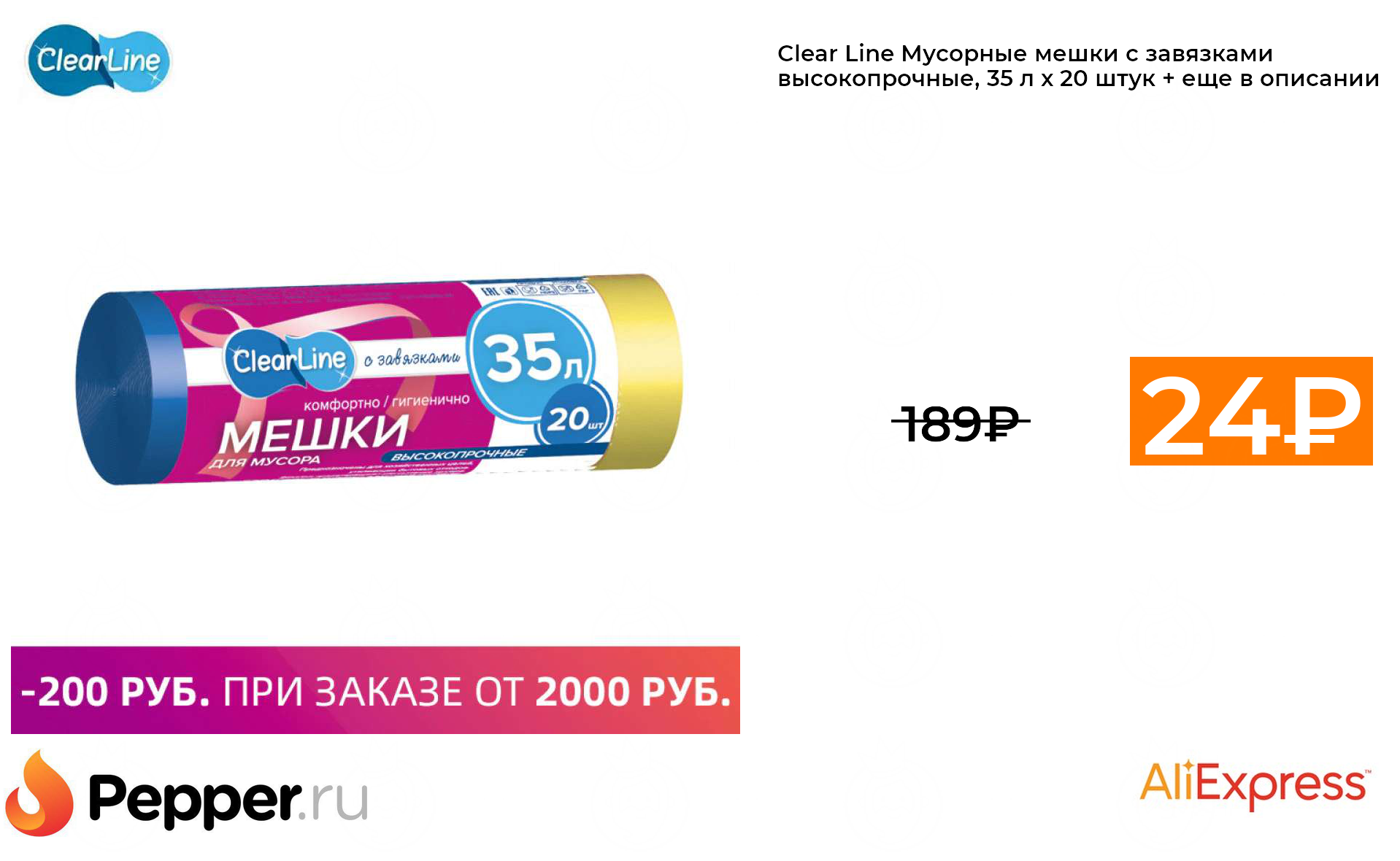 🔹Clear Line Мусорные мешки с завязками высокопрочные, 35 л х 20 штук + еще в описании 24₽ ❗️🔥(везде от 189₽)