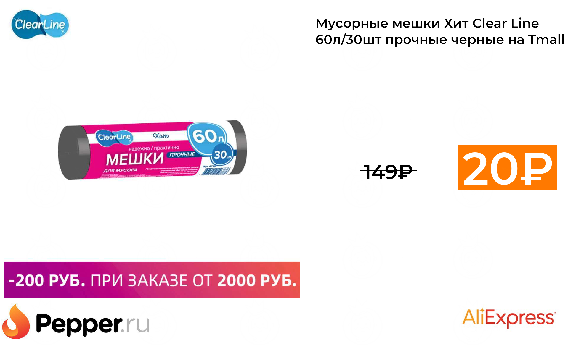 🔹Мусорные мешки Хит Clear Line 60л/30шт прочные черные на Tmall 20₽ ❗️🔥(везде от 149₽)