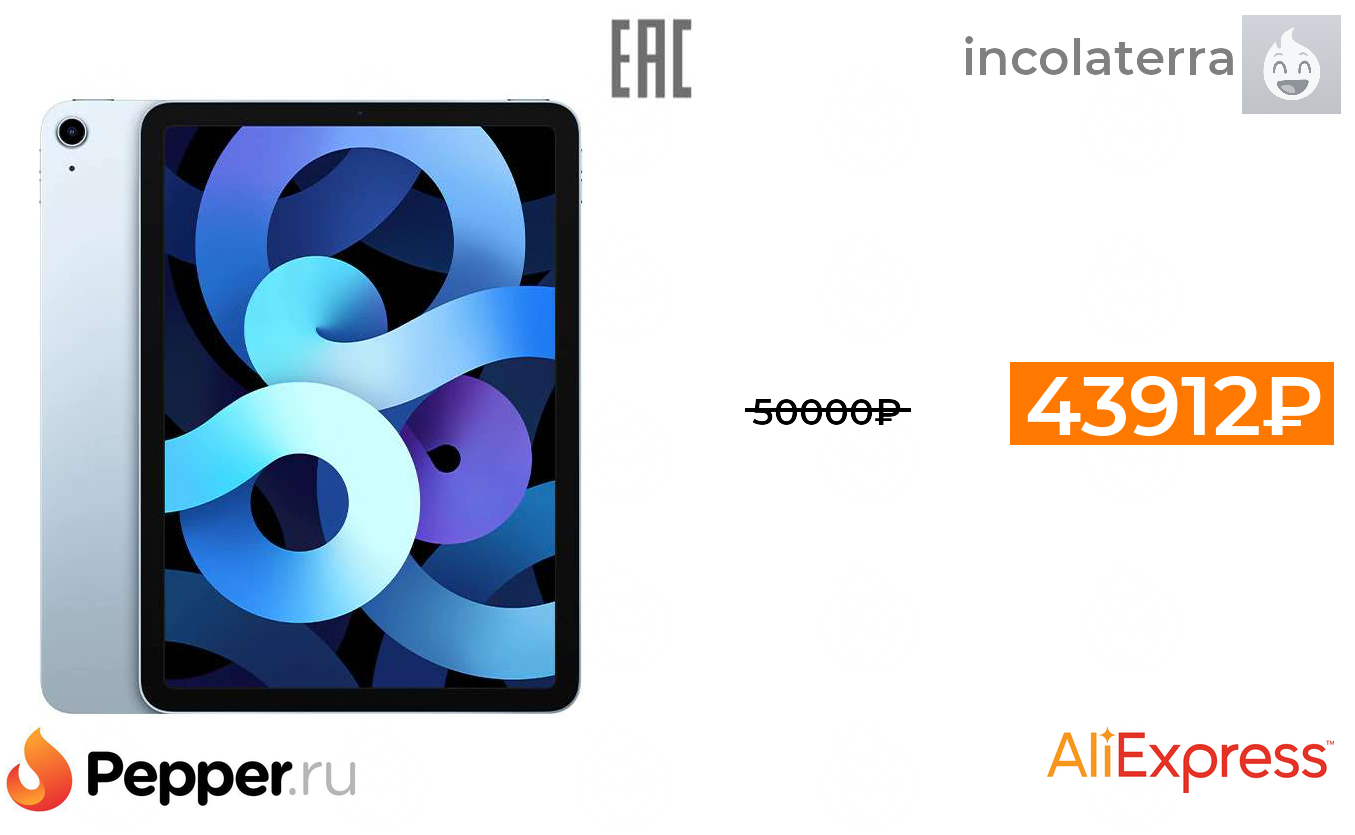 🔹Планшет Apple 10.9" iPad Air Wi-Fi 64 ГБ (2020) на Tmall 43912₽ ❗️🔥(везде от 50000₽)