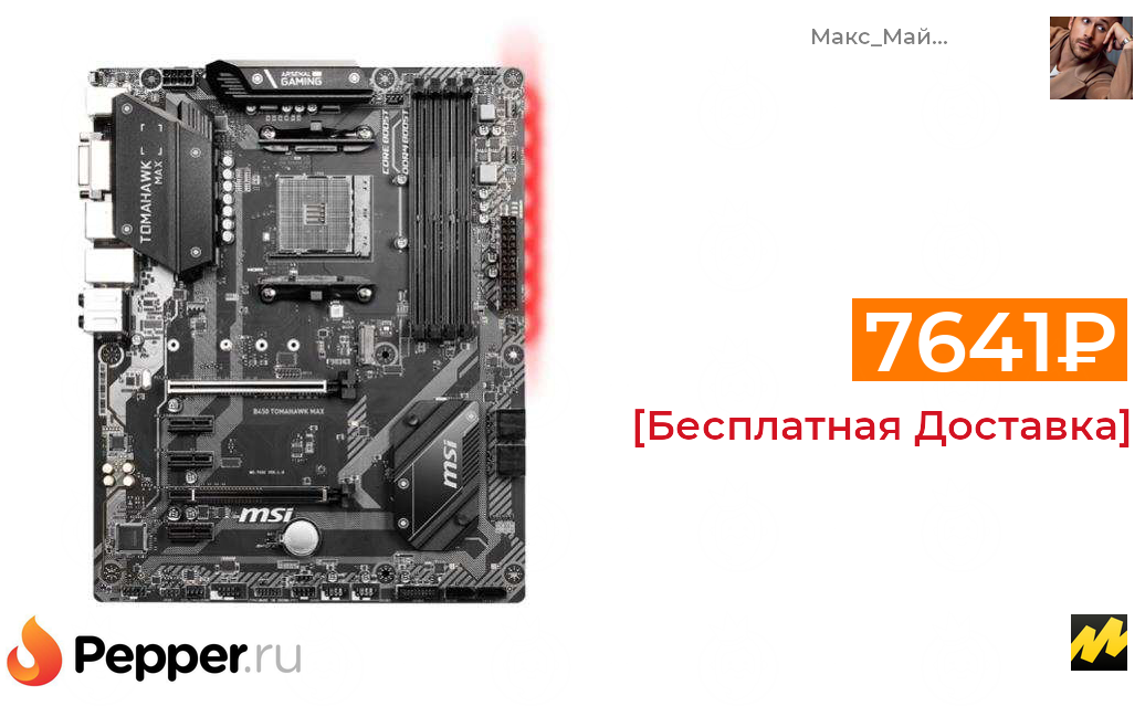 🔹Материнская плата MSI B450 TOMAHAWK MAX + 90 баллов ЯПлюс 7641₽ ❗️🔥