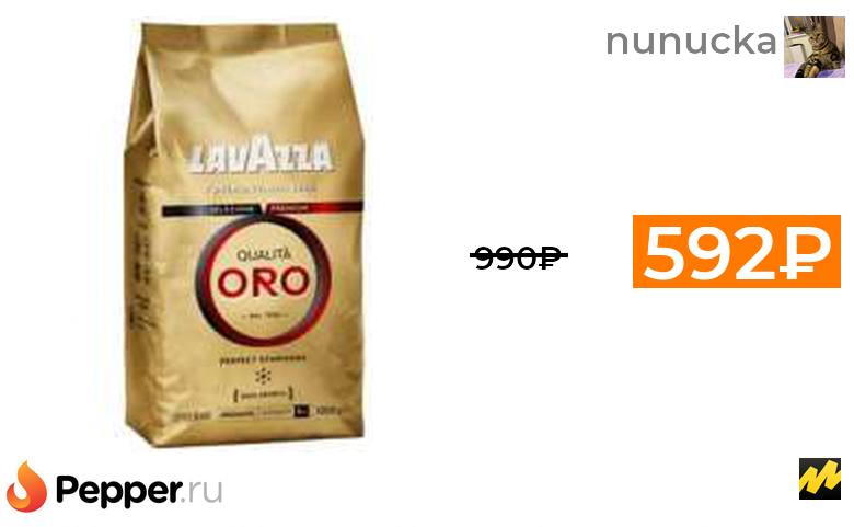 🔹Кофе в зернах Lavazza Qualita Oro, 1 кг (при покупке 4х упаковок) 592₽ ❗️🔥(везде от 990₽)