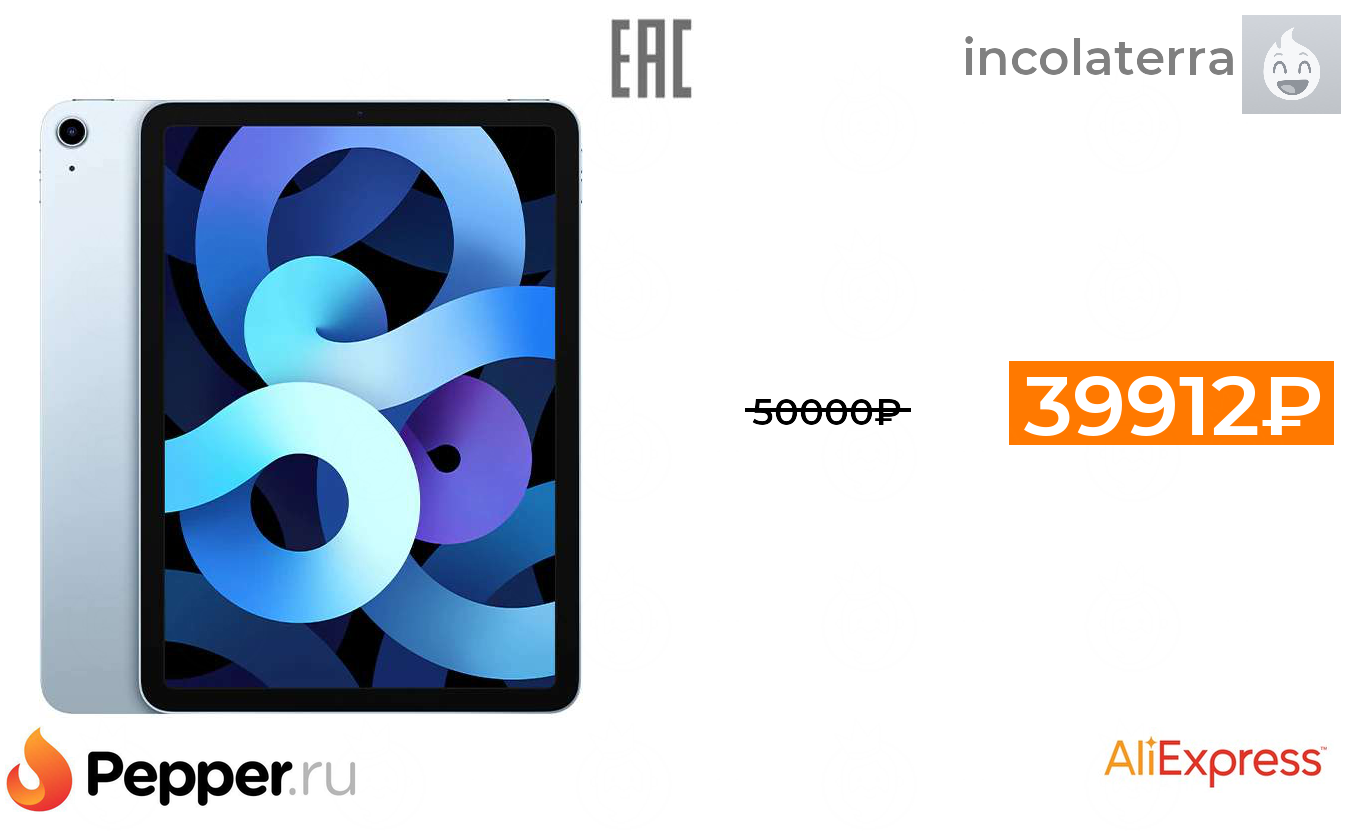 🔹Планшет Apple 10.9" iPad Air Wi-Fi 64 ГБ (2020) на Tmall 39912₽ ❗️🔥(везде от 50000₽)