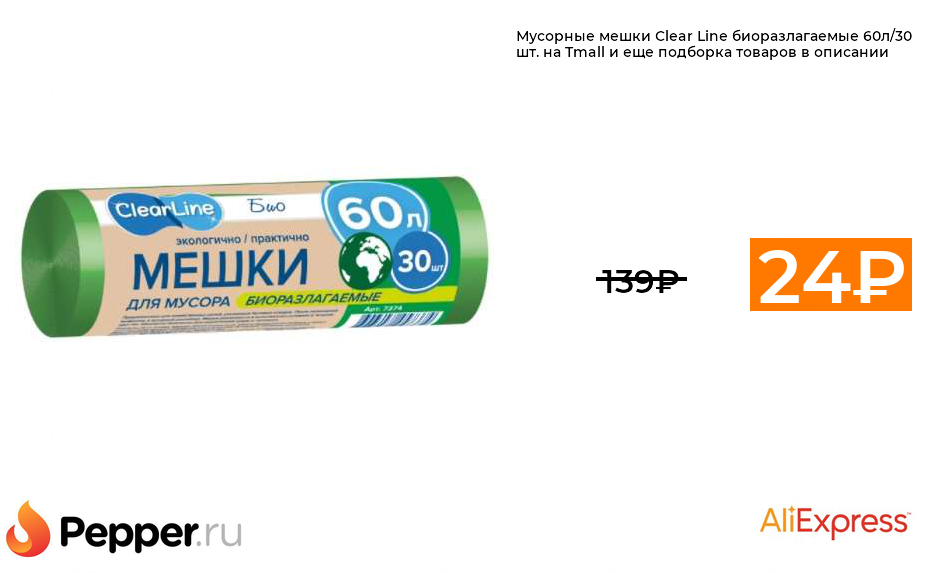 🔹Мусорные мешки Clear Line биоразлагаемые 60л/30 шт. на Tmall и еще подборка товаров в описании 24₽ ❗️🔥(везде от 139₽)