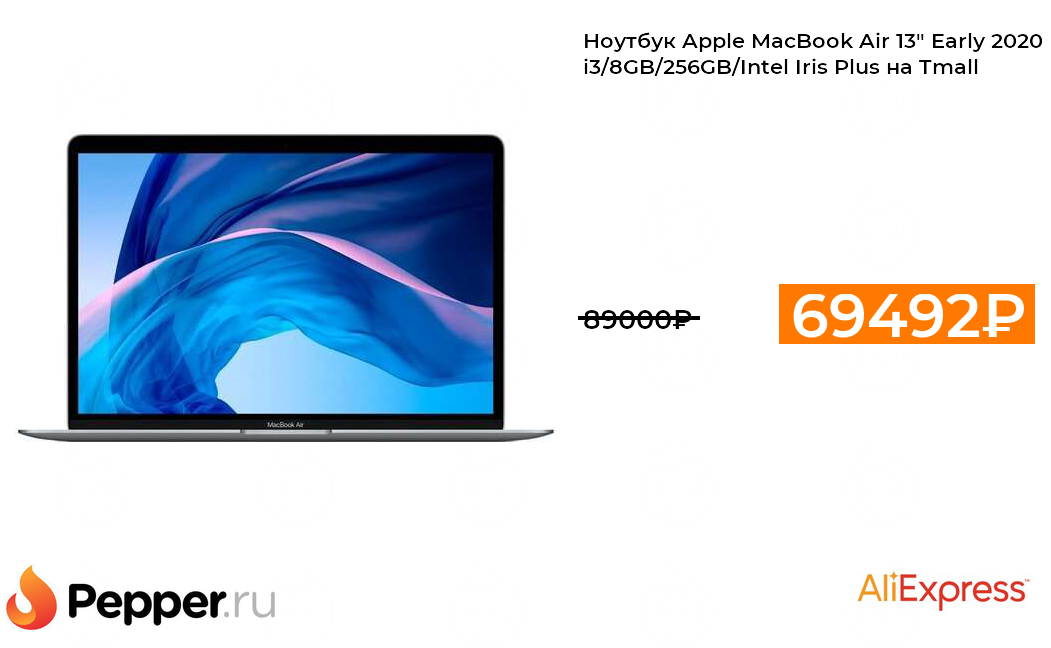 🔹Ноутбук Apple MacBook Air 13" Early 2020 i3/8GB/256GB/Intel Iris Plus на Tmall 69492₽ ❗️🔥(везде от 89000₽)