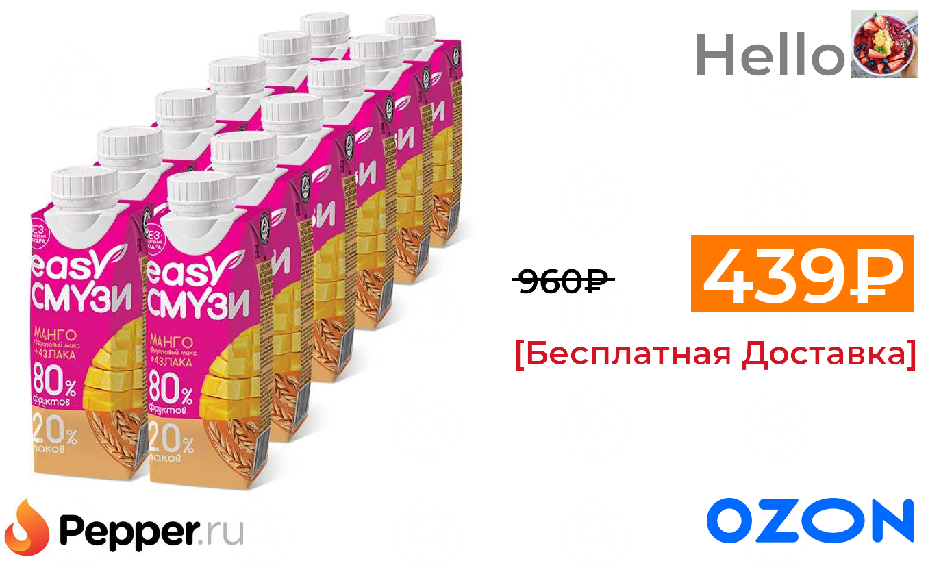 🔹Смузи Сады Придонья Easy Коктейль из манго, винограда, ананасов, с мякотью и злаками, 250 мл х 24 шт (по акции 2 = 1) 439₽ ❗️🔥(везде от 960₽)
