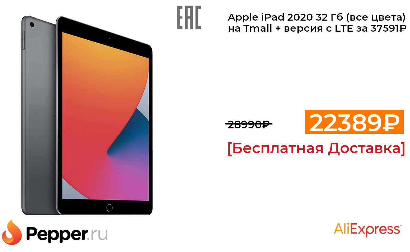 🔹Apple iPad 2020 32 Гб (все цвета) на Tmall + версия с LTE за 37591₽ ❗️🔥(везде от 28990₽)
