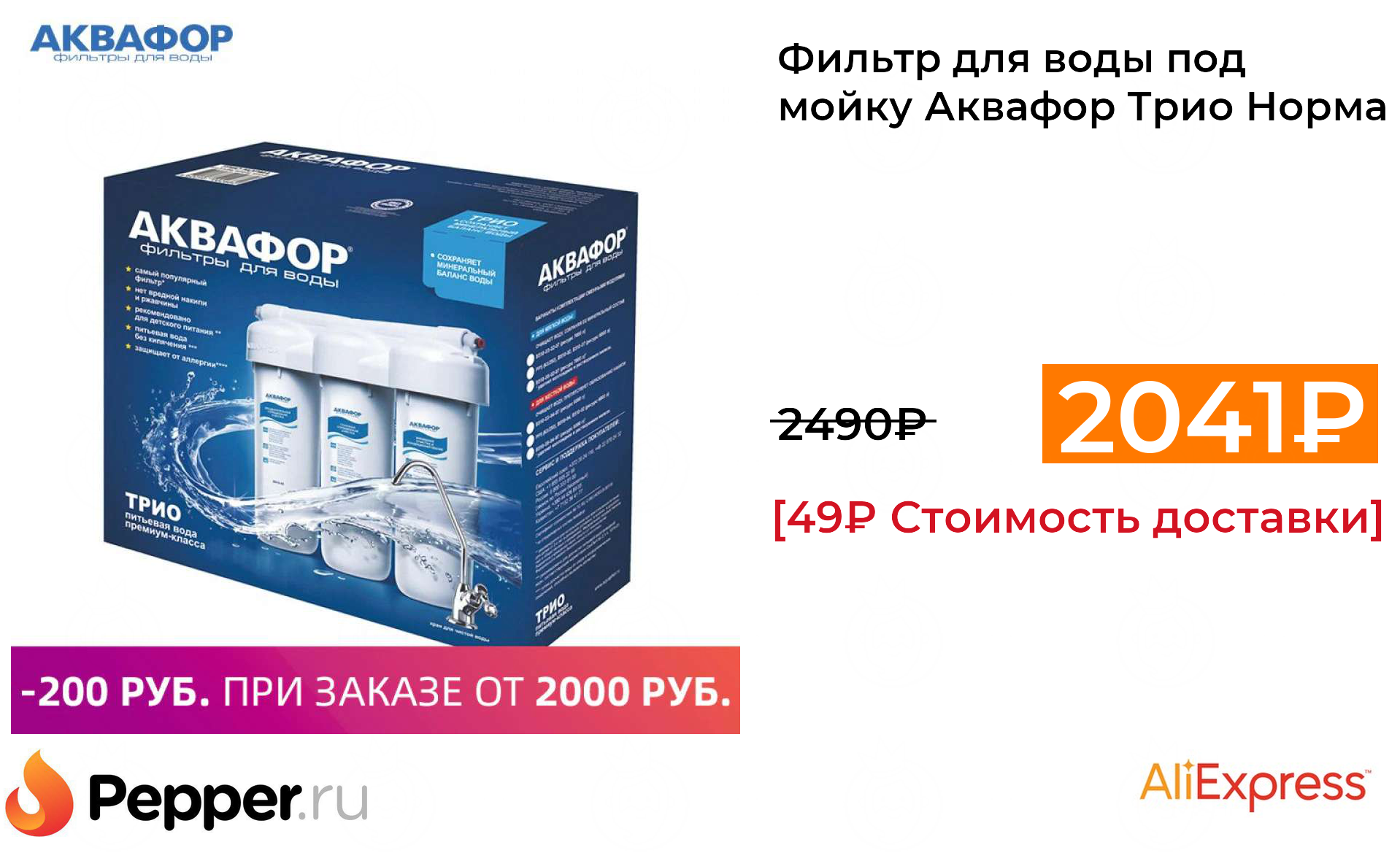 🔹Фильтр для воды под мойку Аквафор Трио Норма 2041₽ ❗️🔥(везде от 2490₽)