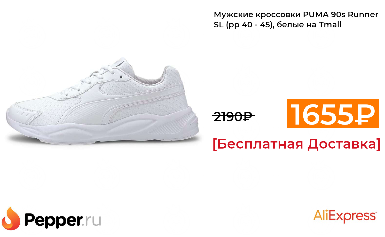 🔹Мужские кроссовки PUMA 90s Runner SL (рр 40 - 45), белые на Tmall 1655₽ ❗️🔥(везде от 2190₽)