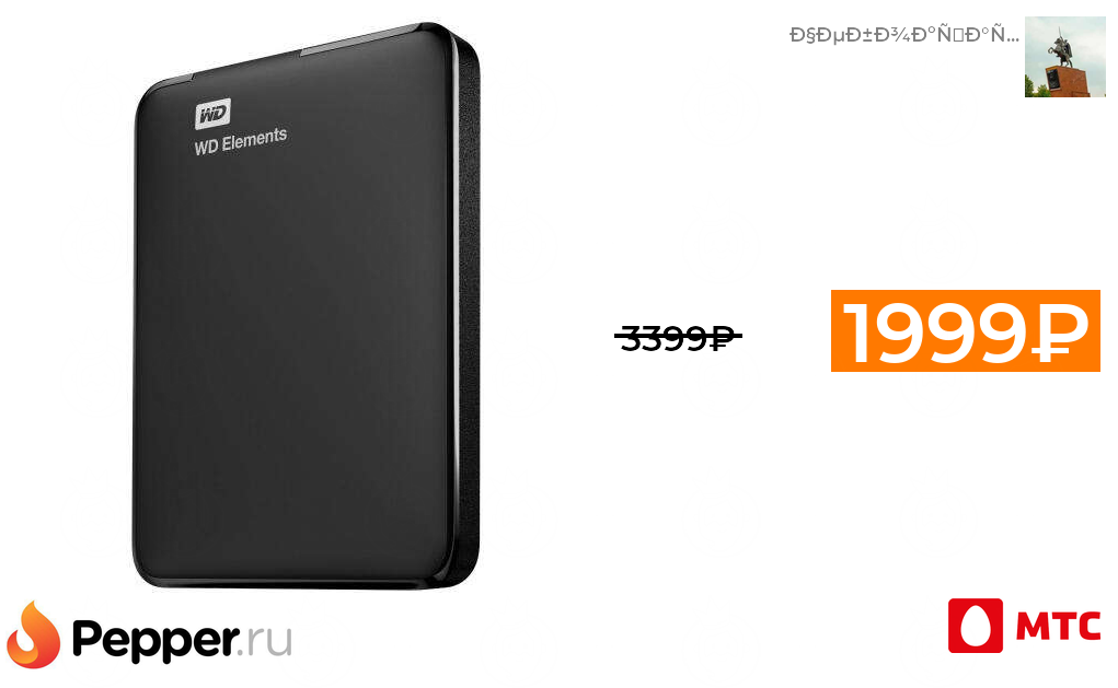🔹Внешний жесткий диск Western Digital Elements 1000 GB 1999₽ ❗️🔥(везде от 3399₽)