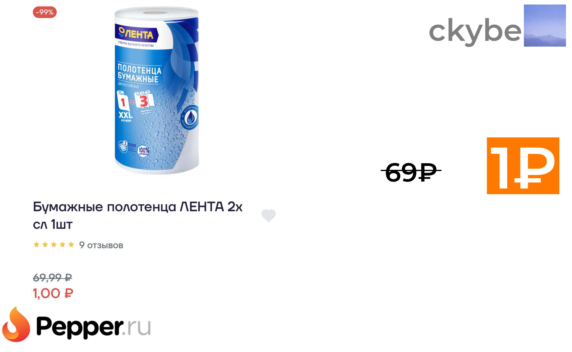 🔹Бумажные полотенца ЛЕНТА 2х слойные 1₽ ❗️🔥(везде от 69₽)