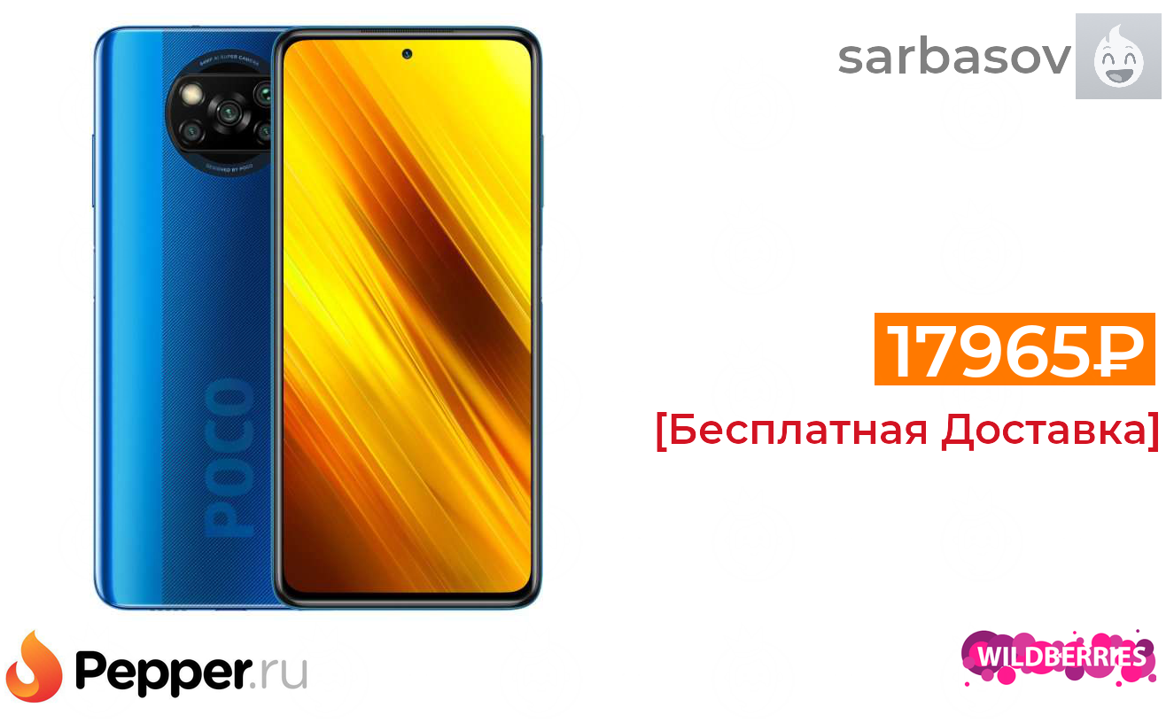 🔹Смартфон Xiaomi Poco X3 NFC 6Gb/128Gb Синий 17965₽ ❗️🔥
