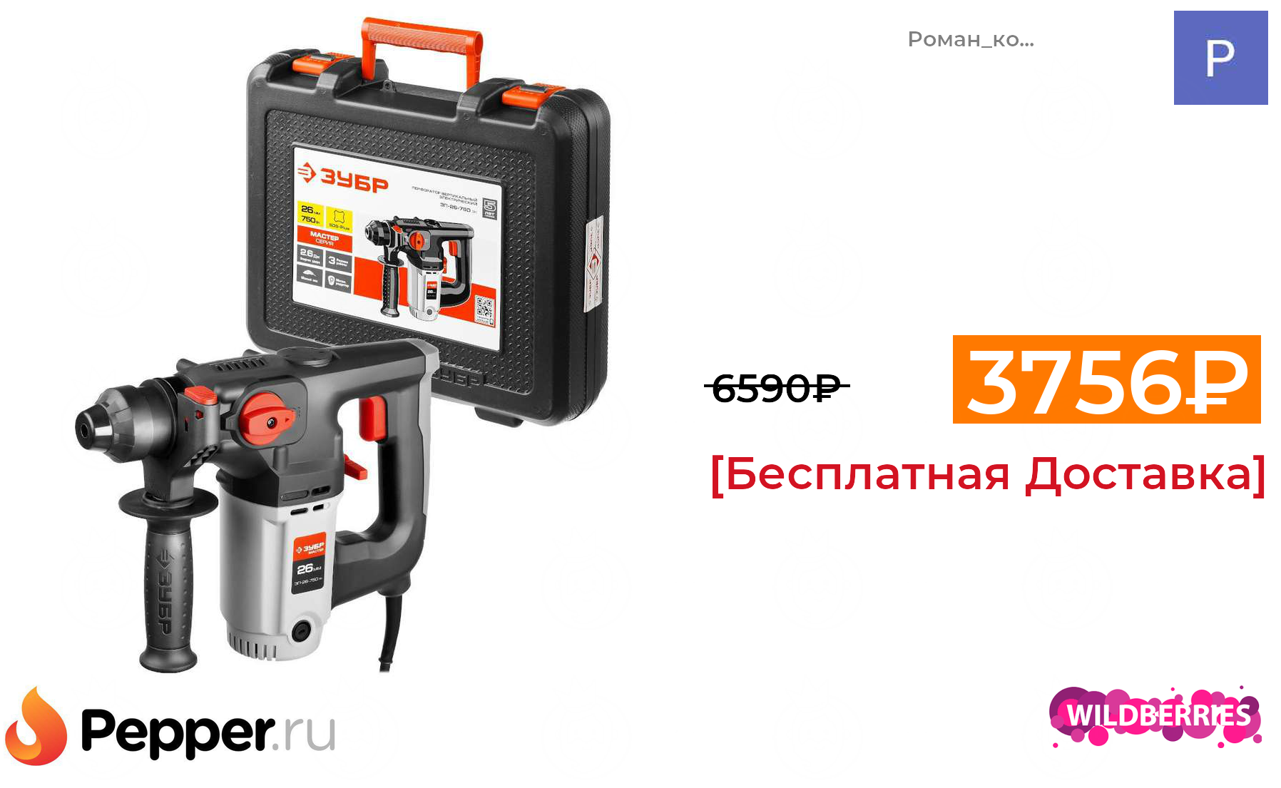 🔹Перфоратор Зубр ЗП-26-750 ЭК (Кейс+ 5 лет гарантии) 3756₽ ❗️🔥(везде от 6590₽)