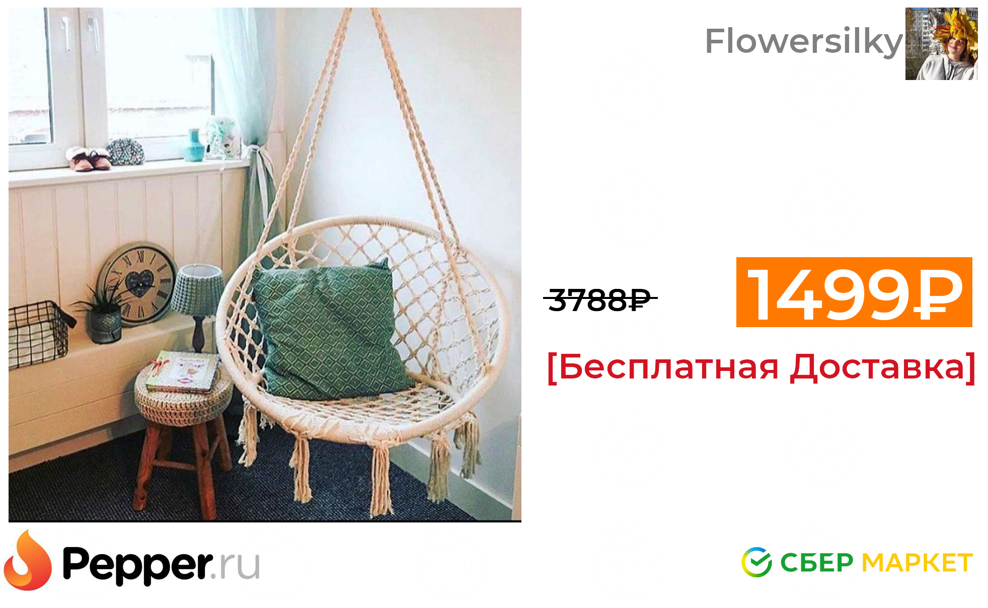 🔹Кресло подвесное 60/80 см в Ленте через Сбермаркет (при первом заказе) 1499₽ ❗️🔥(везде от 3788₽)